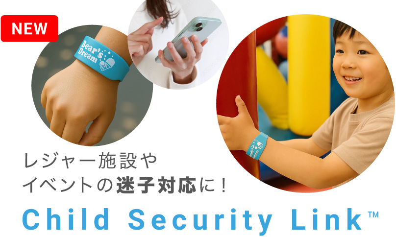 迷子対応を安全、簡単、スマートに実現する迷子リストバンド「Child Security Link™」をリリースしました。